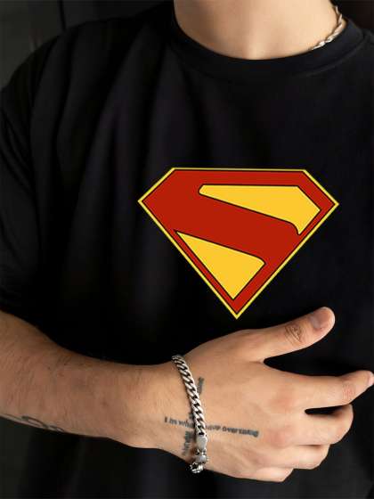 / BDSQUARE Men Superman Superhero Printed Round Neck