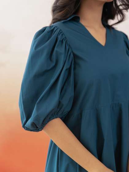 / Polago Clothing Puff Sleeve Cotton ALine Midi Dres